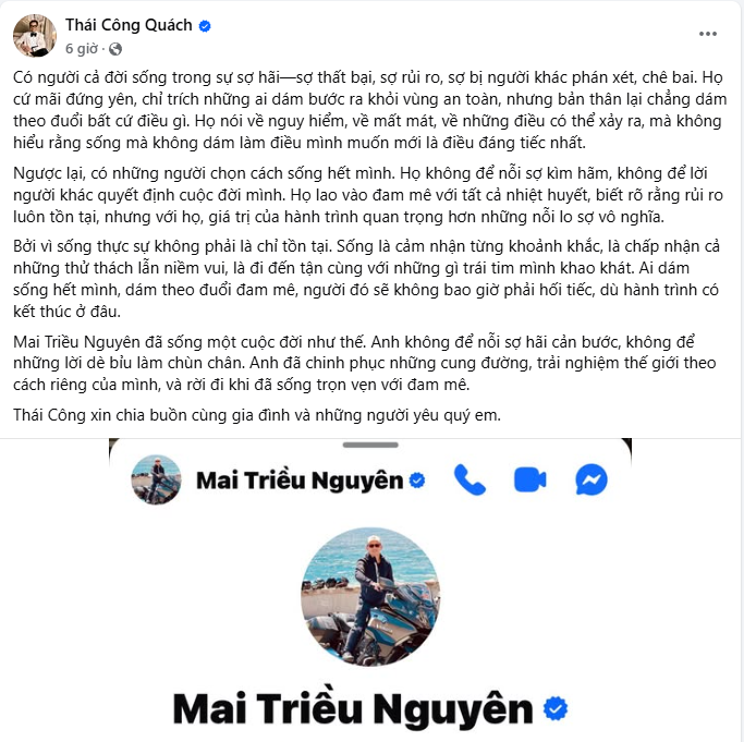 23/03/2025 04:11Thái Công đăng bài chia buồn với gia đình CEO Mai Nguyên nhưng lại bị nói là 'PR bất chấp': Chuyện gì đã xảy ra?