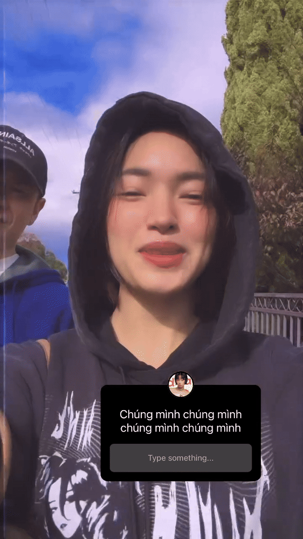 Ở thời điểm hiện tại, Châu Bùi đều đặn cập nhật các hoạt động công việc, đăng story Q&A với cư dân mạng. Trong story này, Binz cũng lấp ló bên cạnh, gương mặt tươi cười hạnh phúc.