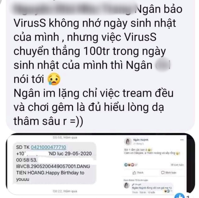 Chính Ngân Sát Thủ cũng từng đăng tải bài đăng khoe đã nhận được một số tiền lớn chúc mừng sinh nhật từ người yêu mình chứ chẳng phải hoàn toàn không quan tâm.