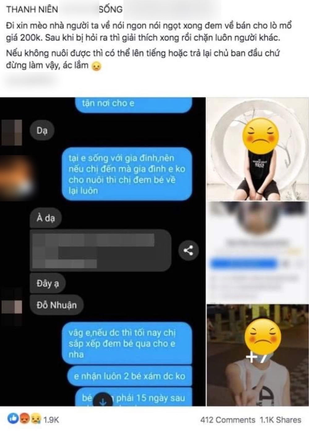 - Đọc xong chỉ biết khóc cho các em mèo... Bạn lợi dụng lòng tin của mọi người, hành động này thực sự là không thể tha thứ được.