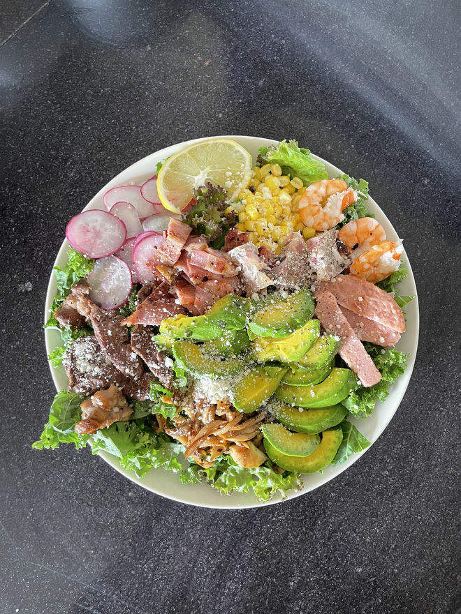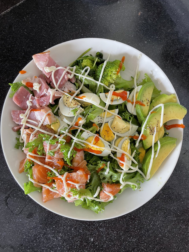 Mình ở một cái chung cư bình thường ở Quận 2, sát Thảo Điền và đang trong quá trình giảm cân, ăn keto nên khá đơn giản: ngày 2 bữa, tối ăn ít và không ăn tinh bột, lâu lâu uống ly cà phê hoặc trà sữa.