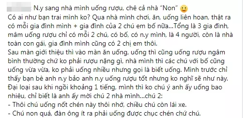 "Sau khi ngồi khoảng 1 tiếng, mình thấy anh ấy mời rượu chú hai thế này :