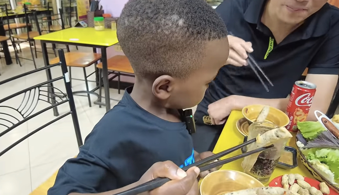 Trước đó, khi gặp gỡ cùng các cô chú trong team Quang Linh Vlogs ở Hà Nội, cả nhóm đã cùng nhau đi ăn lẩu riêu. Tại quán lẩu, Lôi Con tiếp tục chiếm spotlight với các món ăn. Khi ăn lạc luộc, cậu bé biểu cảm khá... khó hiểu, tuy nhiên ngay sau đó đã bị Quang Linh Vlogs bắt bài "diễn sâu" vì có vẻ như Lôi Con đã từng ăn món này rồi chứ không phải lần đầu. Bên cạnh đó, biểu cảm khi ăn lẩu riêu cũng cho thấy cậu bé rất thích thú.