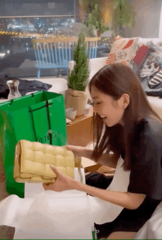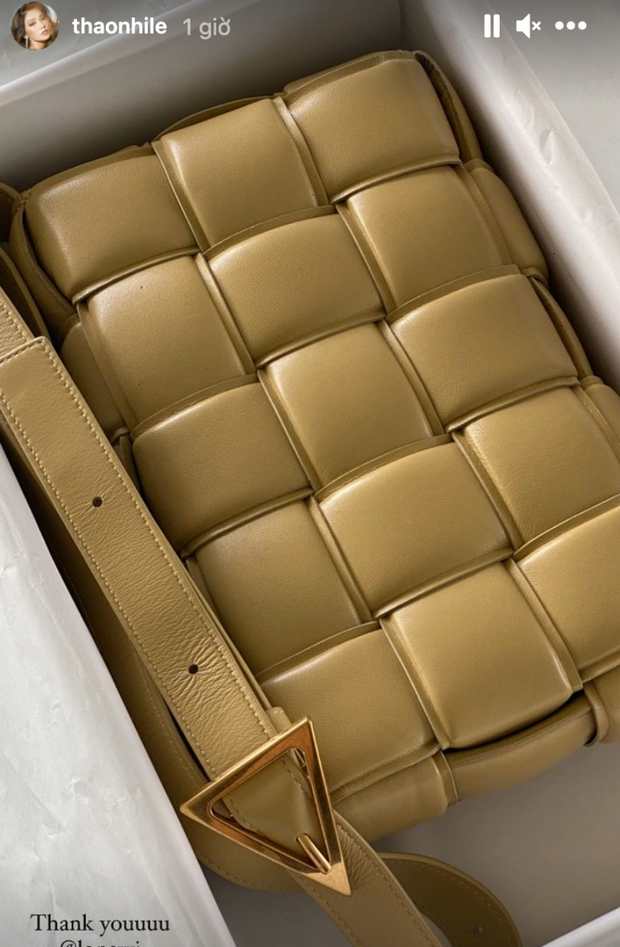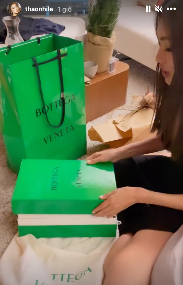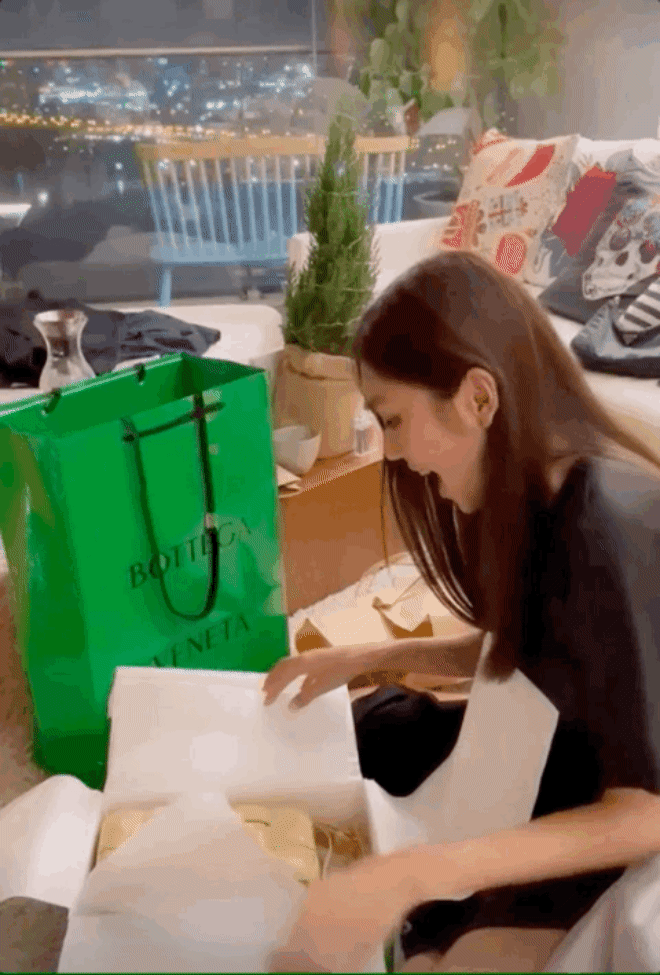 Nhìn khung cảnh xung quanh thì có vẻ như đây là món quà Giáng sinh mà anh chủ quán bar Nguyễn Bảo Long đã "đầu tư" cho bạn gái mình. Chiếc túi hiệu Bottega Veneta màu vàng đồng theo giá trên website đang vào khoảng 2.800 đô (tương đương với khoảng 67 triệu VNĐ).