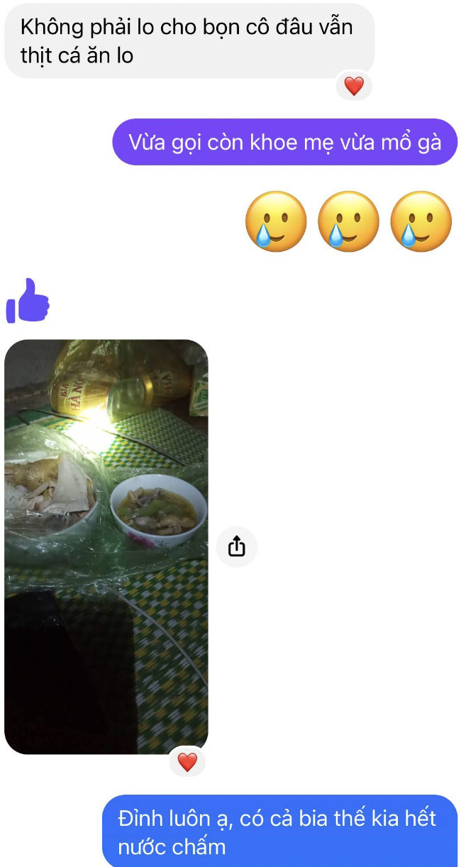 - "Mình sợ nhất gặp những điều này, vì mình cũng đang xa quê và không muốn điều tồi tệ xảy ra với bất kì ai. Nhưng không sao, hãy luôn giữ liên lạc với gia đình để cho an tâm bạn nhé. Nhớ kêu bố mẹ và người thân giữ ấm cơ thể, đừng để bị cảm nặng do mưa lũ ngâm nước nha cậu ơi. "Còn người là còn của". Nguyện cho bố mẹ cậu bình an khi nước lũ rút và sớm làm lại được tất cả những gì cơn lũ mang đi. Cố lên".