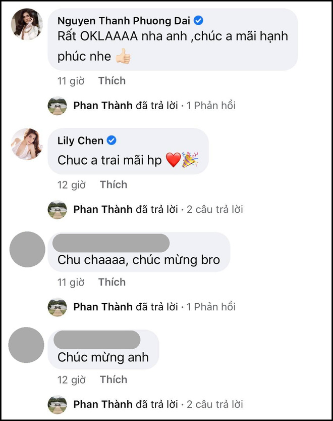 Và tất nhiên người thân, bạn bè và dân mạng ngay sau đó đã để lại rất nhiều bình luận chúc mừng phía dưới bức hình của Phan Thành và Primmy Trương.