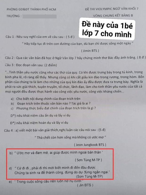 22/01/2021 16:55Thầy cô 'bắt trend' cực nhanh, Sơn Tùng - Hải Tú được 'réo tên' trong bài kiểm tra