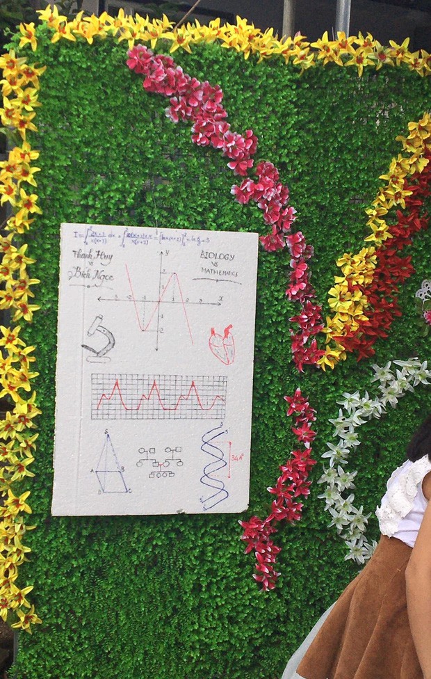 Cậu bạn cho hay: "Theo mình được biết, bức vẽ trong ngày cưới là mong muốn của thầy cô về cuộc sống sau này, có nhiều hàm ý lắm mình cũng không thể giải ra được. Nó mang đậm chất riêng của thầy cô, sự kết hợp giữa toán và sinh".