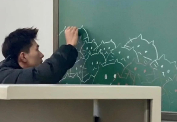 Được biết đây là giảng viên một trường đại học tại Trung Quốc, gây bão bởi diện mạo trẻ trung, điển trai; trên bục giảng, thầy còn vẽ hình ảnh những chú mèo hết sức dễ thương. Chẳng cần diện sơ mi trắng như soái ca trong truyền thuyết, sự giản dị của thầy đủ làm dân tình lịm tim, đúng kiểu người đẹp mặc đồ gì cũng đẹp.