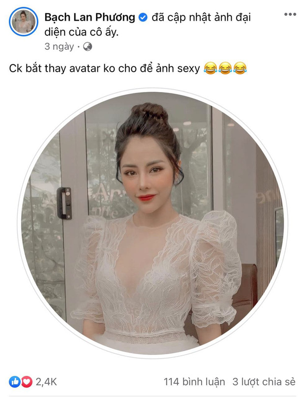 Trước đó, sau khi có nghi vấn sắp tổ chức đám cưới, MC Bạch Lan Phương còn công khai gọi Huỳnh Anh là "chồng". Cụ thể, nữ MC đã thay avatar mới và viết: "Chồng bắt thay avatar không cho để ảnh sexy".