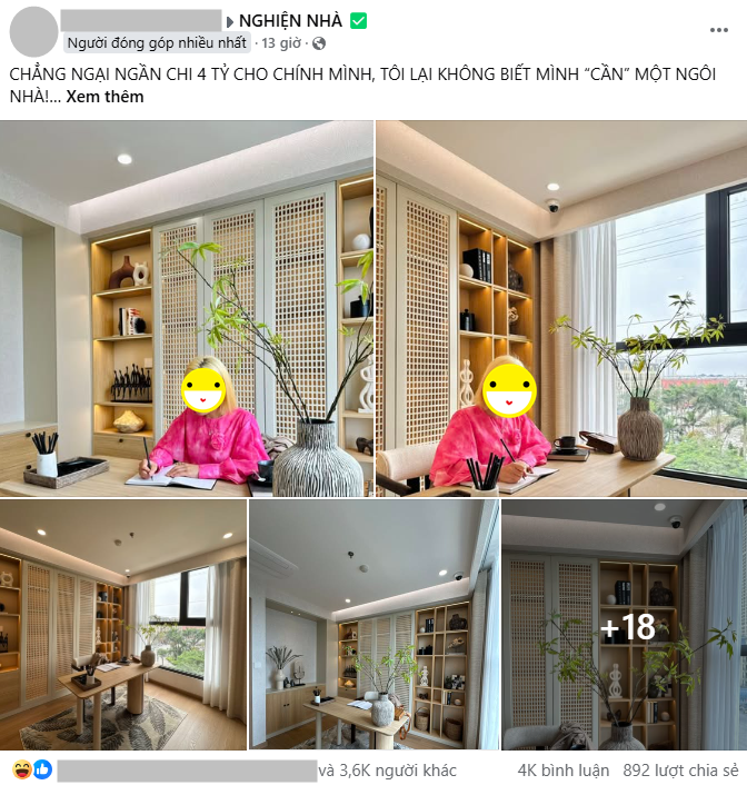 Đính kèm bài đăng, người này đăng ảnh căn nhà mẫu, cho biết mình đã đi xem nhà và xúc động, tưởng tượng ra cảnh cùng các con nhận nhà, có cuộc sống hạnh phúc trong đó. Cô cho biết căn hộ có giá niêm yết 7,8 tỷ đồng và quyết định mua nhà.
