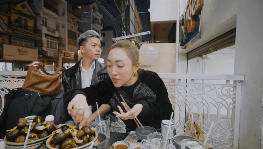 Ốc nhồi thịt là một trong những món ăn không thể bỏ qua khi đến Đà Lạt. Bên cạnh món ốc bất hủ này, Thùy Chang và nhóm bạn còn quây quần bên bếp nướng, nồi lẩu đuôi bò... cùng nhau thưởng thức ẩm thực đường phố Đà Lạt.