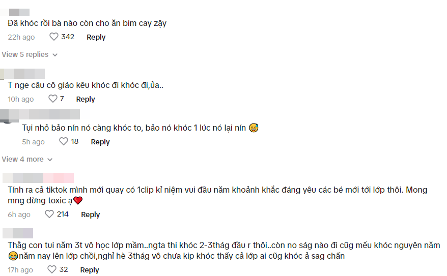 Khung cảnh đáng yêu ở trường mầm non khiến ai nấy xem đều phải bật cười. Hóa ra ngày đầu tiên đi học sẽ có nhiều kỉ niệm như vậy. Có lẽ một thời gian nữa, khi các con đã quen cô, quen lớp thì không khí lớp học sẽ vui tươi trở lại mà thôi. Nhiều người chia sẻ nhờ clip mà cũng hiểu được thêm sự vất vả của giáo viên khi trông các con trong độ tuổi chập chững. Không ít mẹ có con chuẩn bị đi học cũng lo lắng, mong giai đoạn này sẽ trôi qua thật suôn sẻ.