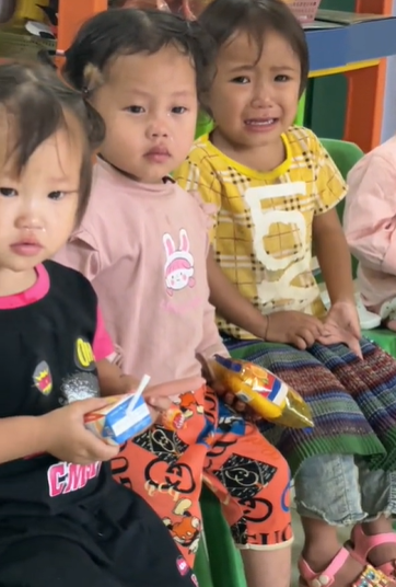 Trong clip, các em bé đang ngồi theo hàng cực kỳ ngoan ngoãn. Bé nào cũng ngồi im nhưng tâm trạng chắc chắn là rất hỗn độn. Có bé nước mắt chảy ròng ròng, có bé vẫn đang gào khóc... và có 2 bé ngủ ngon trong tư thế ngồi.