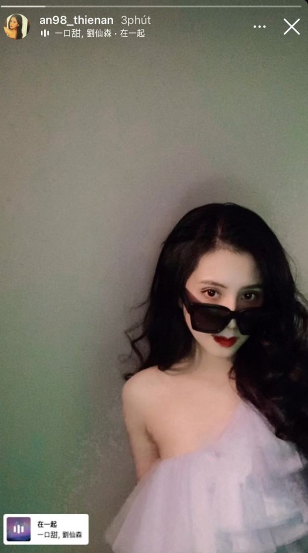 Thay vì đăng ảnh với tông "thiên thần" - "trong sáng" như mọi khi, Thiên An đã lột xác hoàn toàn khi đánh son đậm. Bên cạnh đó, cô nàng cũng làm tóc xoăn xoăn gợi cảm, diện chiếc đầm hở vai. Có thể thấy dù đang ở nhà chăm sóc bé Sol, nhưng Thiên An vẫn tranh thủ "lên đồ chặt chém" không thua cô gái nào.