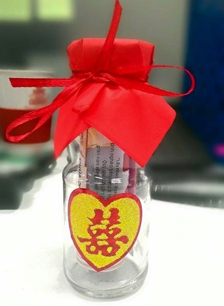Ngày 6/4, Nguyễn Ngọc Tú (26 tuổi) và Bùi Thị Ngân Giang (25 tuổi) khiến bạn bè bất ngờ khi báo hỷ bằng thiệp cưới đặt trong lọ thủy tinh.