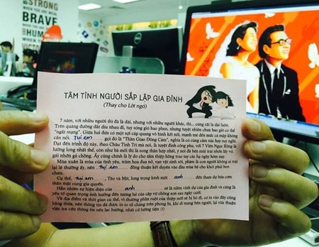 Tấm thiệp còn đính kèm bức Tâm tình người sắp lập gia đình, phía sau là Tâm tình người đi ăn cưới.