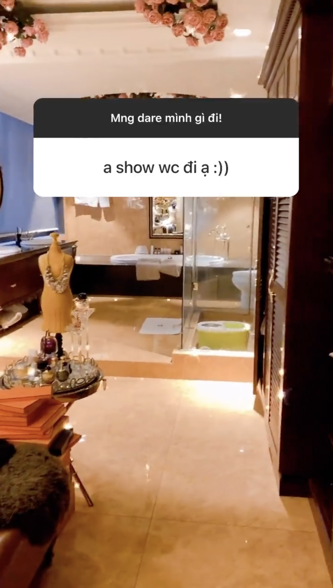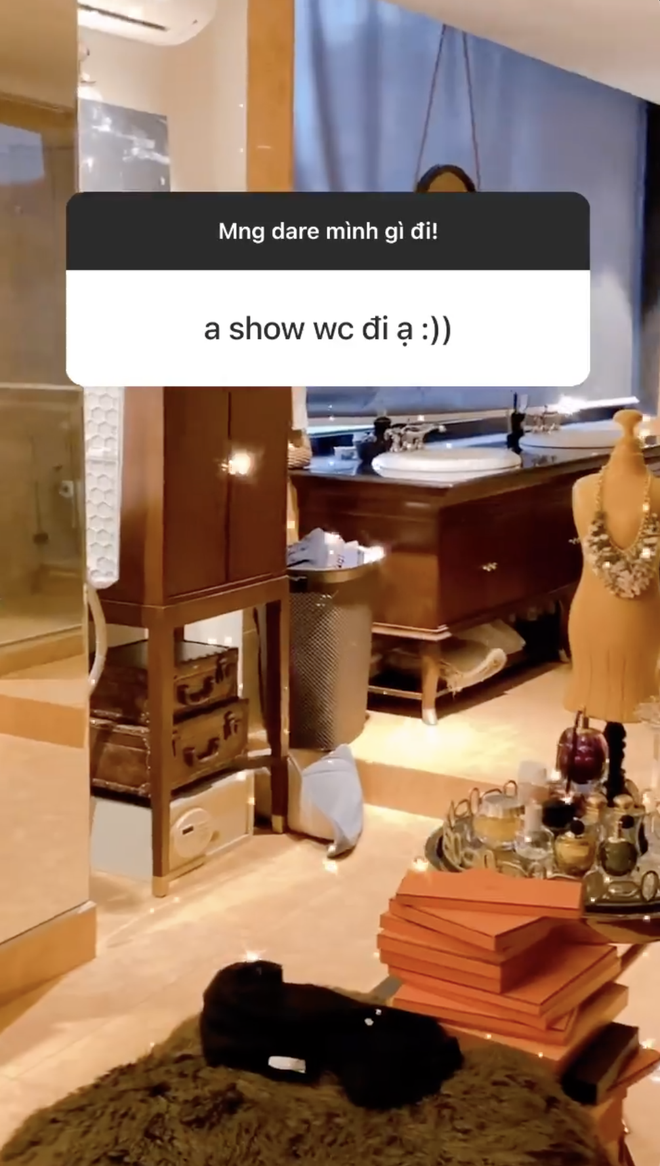 Clip ngắn của Gia Kỳ đã giải đáp thắc mắc có phần "khó đỡ" là WC nhà giàu trông như thế nào. Có thể thấy không gian WC nhà Gia Kỳ cực lớn và thông thoáng với tone màu vàng chủ đạo, nhìn thôi đã thấy rất sang xịn. Mà kể cũng đúng thôi vì WC đặt trong biệt thự 7,5 triệu đô (khoảng 170 tỷ đồng), muốn xoàng xĩnh cũng không xoàng xĩnh được ấy chứ.