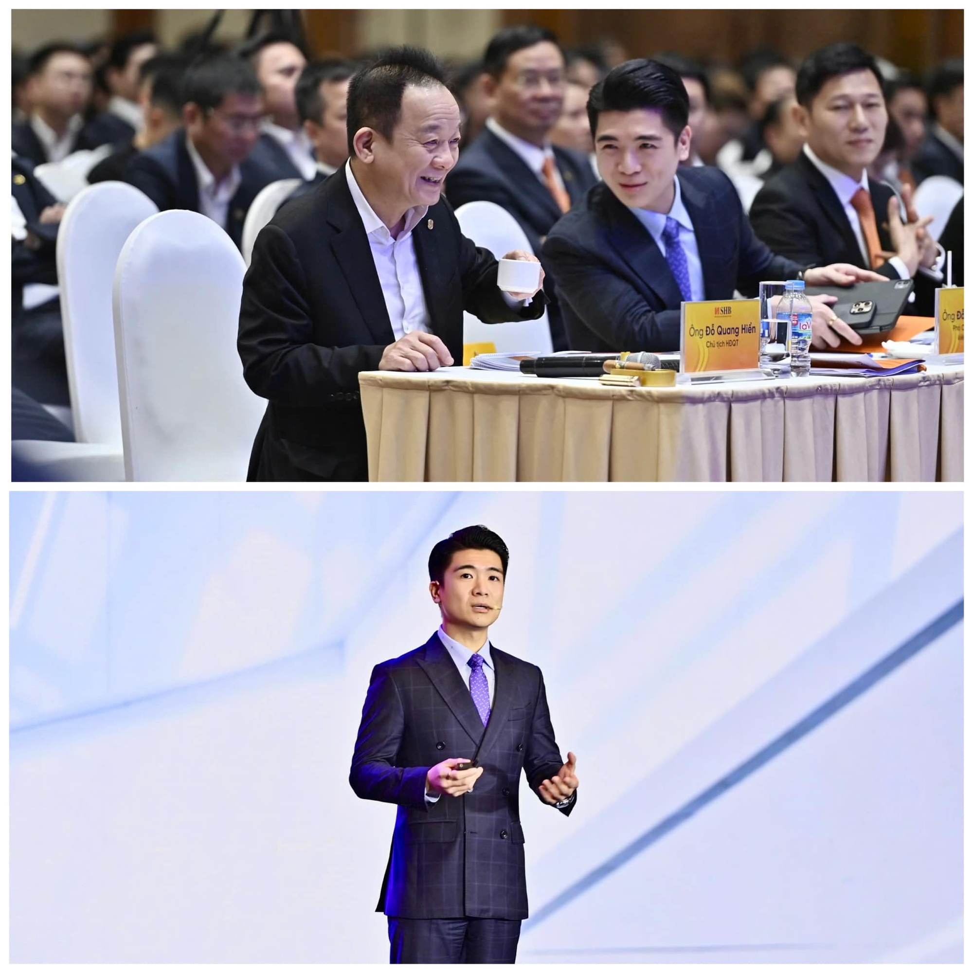 Mới đây, doanh nhân Đỗ Quang Vinh - thiếu gia nhà bầu Hiển, kiêm Chủ tịch Hội đồng quản trị Công ty Cổ phần chứng khoán SHS - gây bất ngờ khi chia sẻ về khoảnh khắc phía sau một cuộc họp hội đồng quản trị. Trở về nhà sau khi hoàn thành công việc, chưa kịp cởi vest, "xả vai" Chủ tịch, Đỗ Quang Vinh đã phụ trách luôn trông hai con và một cháu gái.