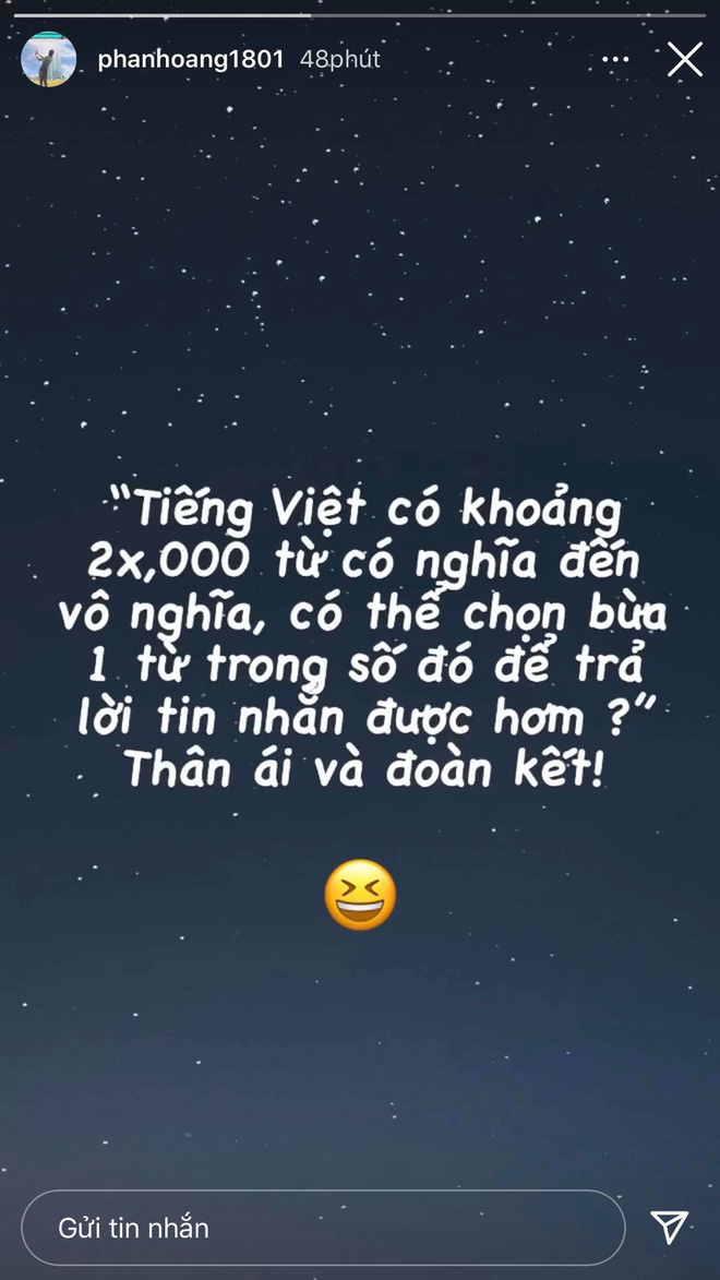 Cụ thể, hôm nay (25/3) là sinh nhật Khánh Hà - bồ cũ Phan Hoàng. Và đến đúng 0h ngày 25/3, trên story của Phan Hoàng xuất hiện hình ảnh chiếc bánh kem. Đáng chú ý, chiếc story này còn xuất hiện trước cả khi Khánh Hà tự chúc sinh nhật mình. Thế nhưng, sau đó không lâu thì Phan Hoàng đã xóa story này đi.