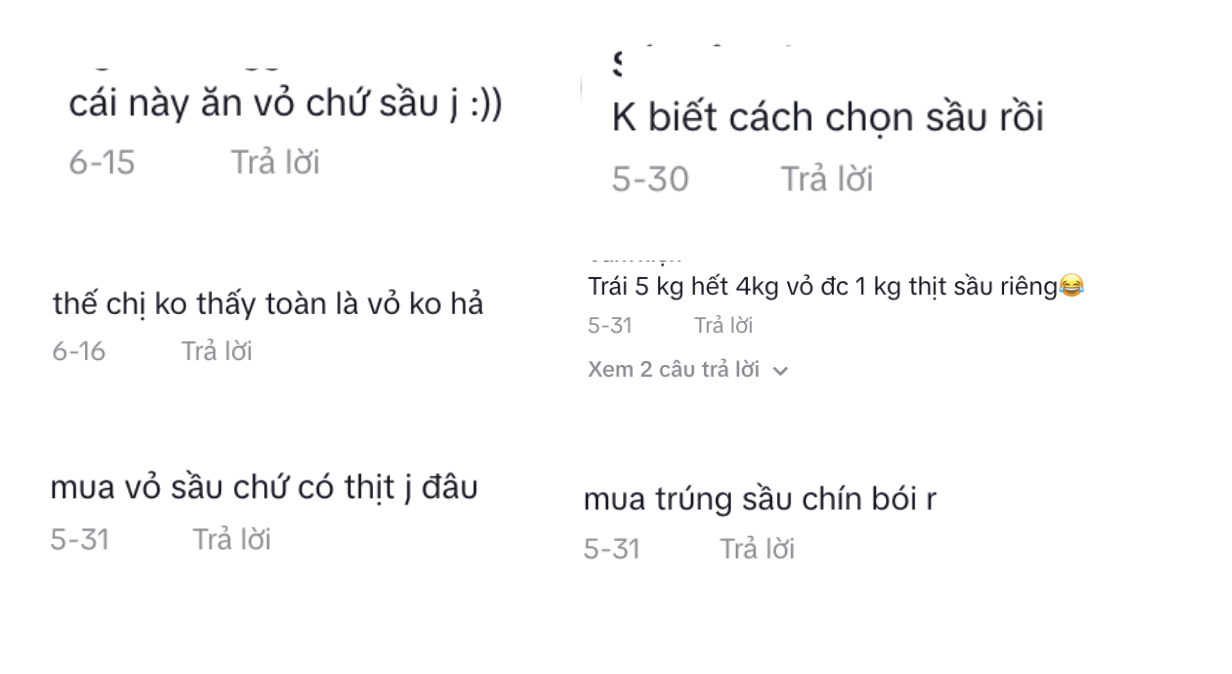 Sau khi phần bình luận ngập tràn tranh cãi, thì cô nàng mới lên tiếng giải thích rằng mình chỉ nói đùa chứ không bao giờ bán những trái sầu riêng ít thịt như thế này. Cô còn cho biết thêm khi thu hoạch trúng những trái như vậy thì chỉ để ở nhà ăn, chứ không dại gì mà mang đi bán cho khách hàng. Lời giải thích này cũng khiến nhiều người bức xúc cho rằng cô đang cố tình câu view, tạo nội dung gây sốc để thu hút sự chú ý. Dù vậy nhưng những video tiếp theo thì cô nàng vẫn mang những trái sầu riêng không có nhiều thịt, toàn vỏ thế này để "mukang" mặc lời chê "đúng là không biết chọn trái ngon".