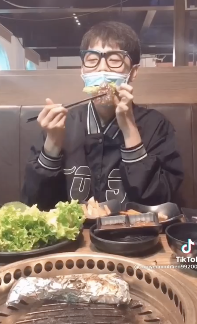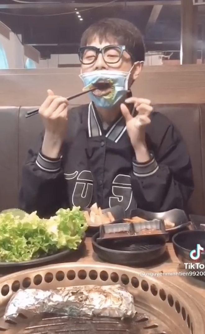 Để đáp lại lời "khiêu khích" của một netizen về việc làm clip ăn thịt bò sẽ được một triệu tim, nam thanh niên này đã đăng clip làm luôn và ngay. Thế nhưng, thay vì mở ra ăn đàng hoàng thì anh ta lại khoét khẩu trang ngay miệng và thoải mái ăn những món đồ dầu mỡ, nướng xào thông qua đường đó.