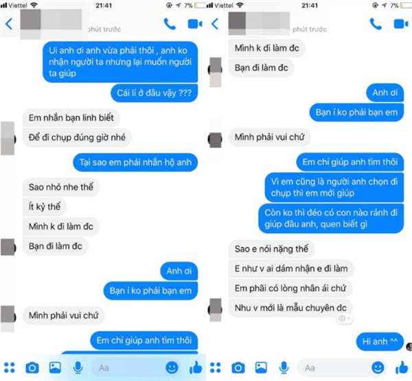 Điều khiến Thảo và nhiều người đọc được câu chuyện bức xúc hơn là nhiếp ảnh H.K còn vô tư dặn dò cô nàng nhắn tin cho cô mẫu mới về thời gian, địa điểm chụp hình.