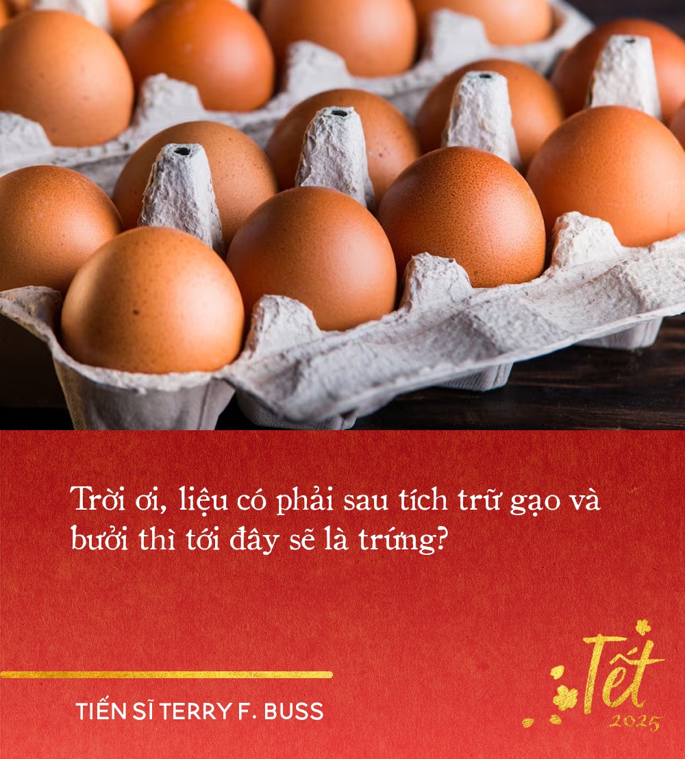 Chính vào lúc tôi đang thấy tạm yên tâm về cuộc sống của mình dịp Tết bởi đang dần thích nghi dần với việc tích trữ gạo và bưởi thì tôi chợt giật nảy người khi bước chân vào bếp. Bằng một cách nào đó, như thể có phép thuật, hơn 100 quả trứng gà đang chễm chệ trên kệ bếp. Trời ơi, liệu có phải sau tích trữ gạo và bưởi thì tới đây sẽ là trứng?