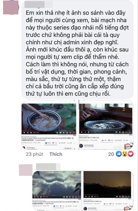 Nhiều bạn vào tấn công bảo em ăn cắp ý tưởng món mạch nha của Lý Tử Thất. Ăn cắp ý tưởng đạo cụ, các bước quay và phong cảnh và trình tự quay video mạch nha của chị ấy.