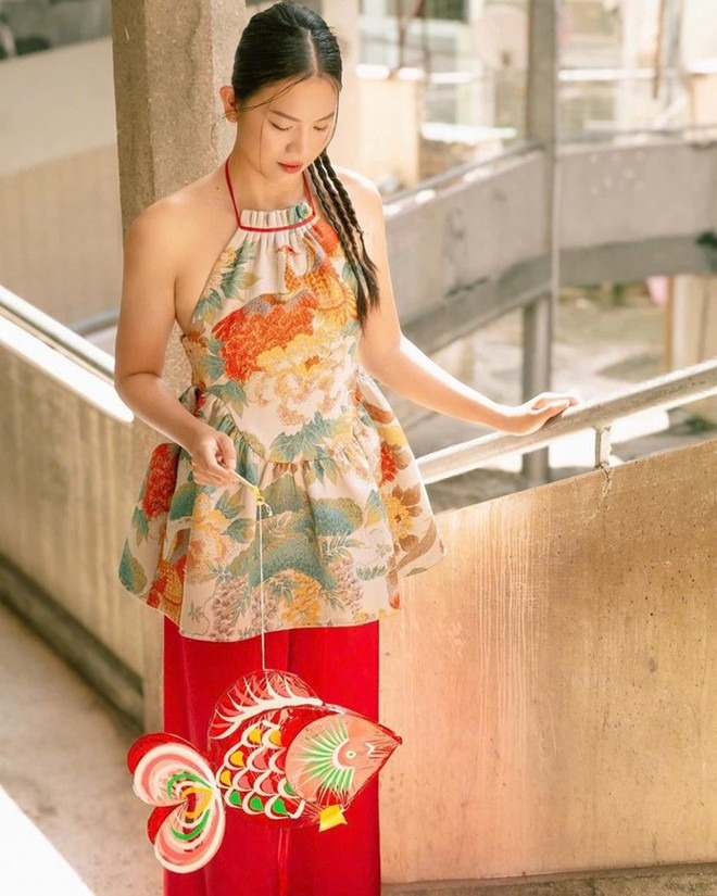 Trước đó, cựu VĐV bơi lội Ánh Viên cũng khiến công chúng bất ngờ với tạo hình truyền thống dịp Trung thu. Trong một bộ hình trên trang cá nhân, cô hiếm hoi diện chiếc áo yếm thêu tay, khoe khéo lưng trần quyến rũ. Chiếc yếm dáng peplum được kết hợp với quần lụa đỏ, tạo nên một tổng thể hài hoà.