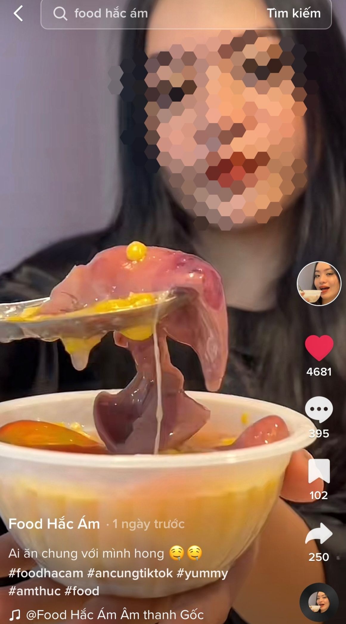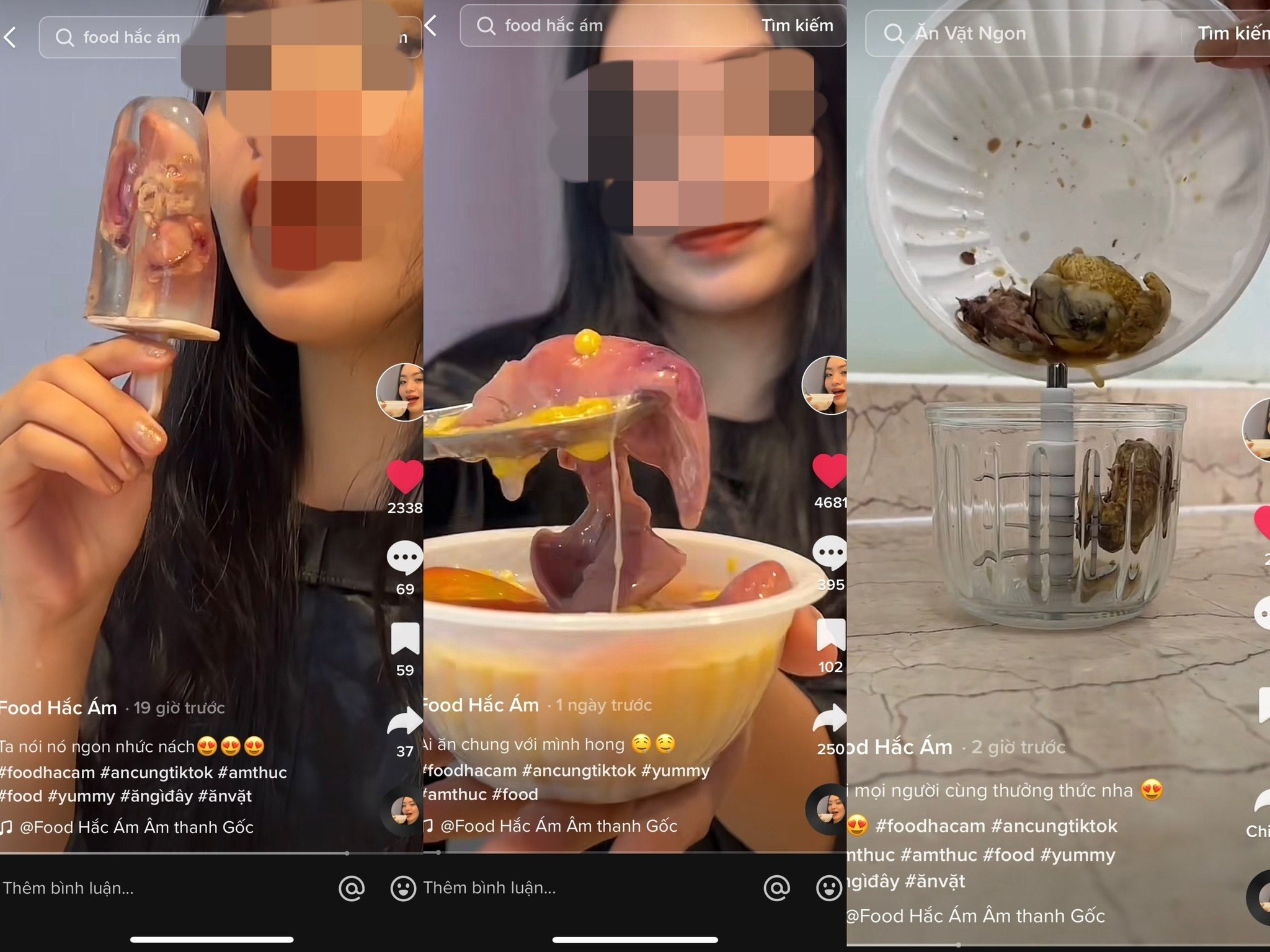 Mới đây, dân tình đã được phen "dậy sóng" trước những video của kênh TikTok có tên F.H.A. Theo đó, cô gái trong video này đã lần lượt thực hiện các món ăn "khó hiểu" như: sinh tố hột vịt lộn, chè bắp, kem tim gà, chè bắp lòng gà...