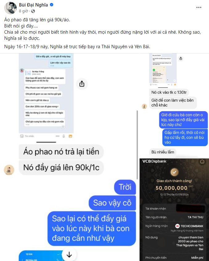 Cùng với lượng người hỏi mua áo phao cứu hộ ngày một nhiều, khiến mặt hàng này trở nên khan hiếm. TikToker Long Chun, diễn viên/MC Đại Nghĩa và rất nhiều đơn vị từ thiện "than trời" vì giá áo phao tăng mạnh.