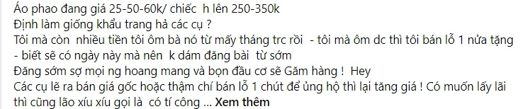 - "Lợi dụng thời điểm khó khăn để kiếm lời cho bản thân, chả hiểu luôn".
