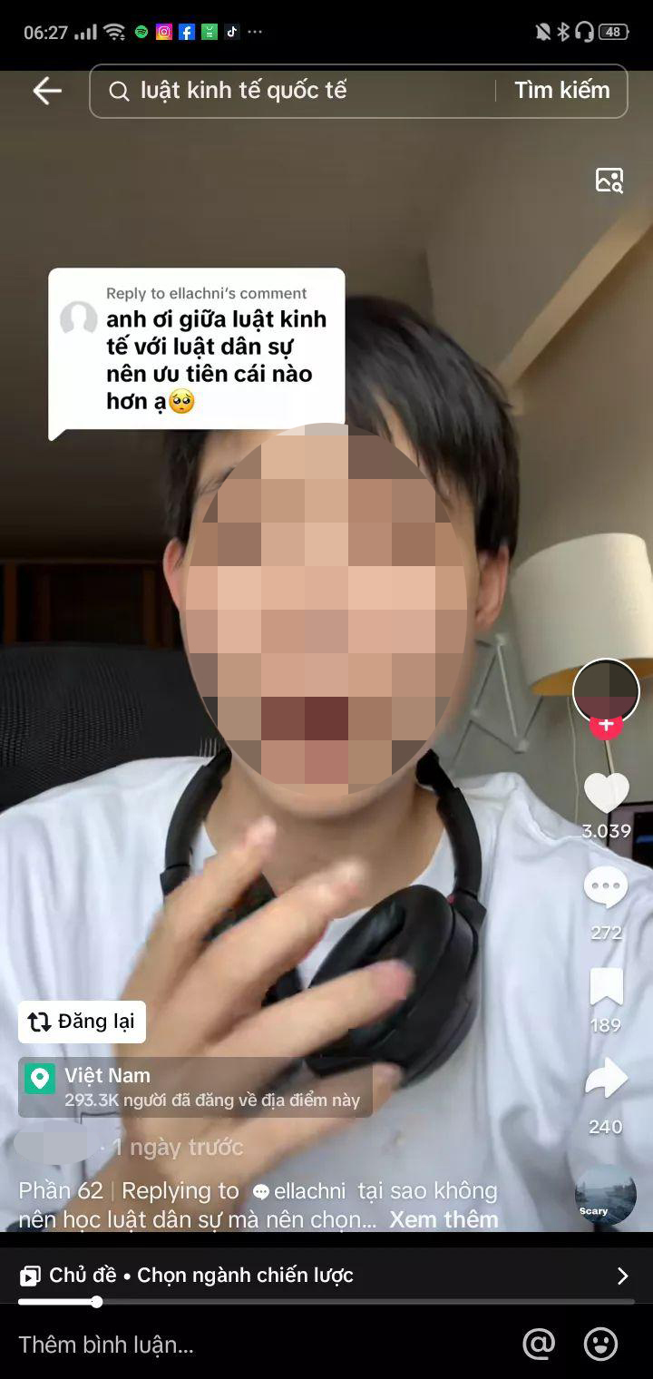 Theo đó, TikToker thường lên mạng với những nội dung so sánh các ngành học, điển hình như ngành Luật nhưng không có bất kỳ luận cứ hay dẫn chứng nào chứng minh cho các luận điểm hay so sánh của mình. Theo nhiều ý kiến, những thông tin mà TikToker này sử dụng được anh ta quảng cáo là "từ bạn", "từ người thân"... đều không có giá trị tham khảo.