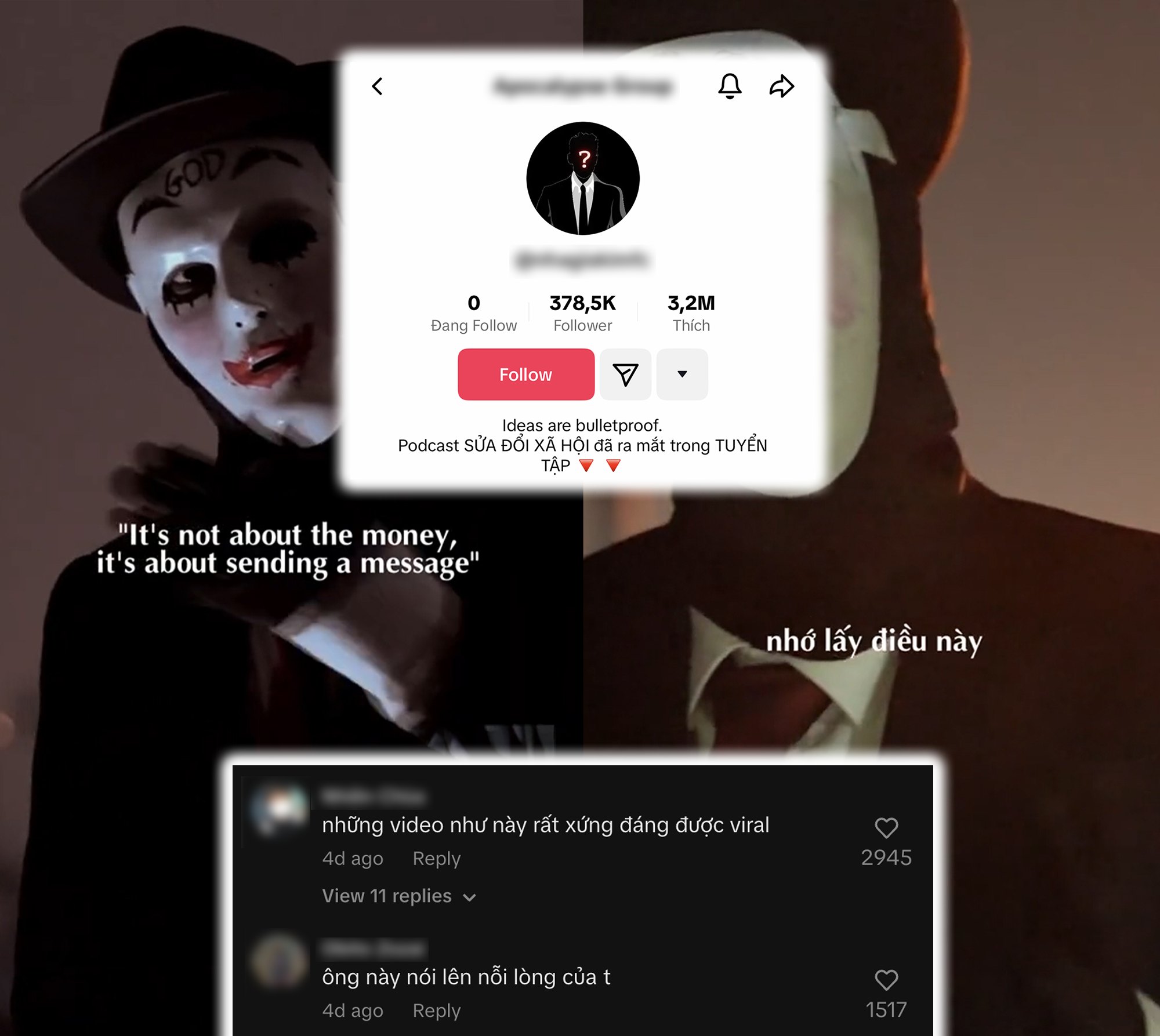 Nhưng thanh niên TikToker được đề cập ở trên lại hoàn toàn khác xa hình ảnh của Vendetta khi người này chẳng chống lại độc tài nào cả mà chỉ đưa ra những quan điểm khá cực đoan về phái nữ. Tuy vậy, TikToker này lại nhận được một số sự ủng hộ từ dân mạng (nhiều nhất vẫn là phái nam) vì cho rằng dám nói ra "những điều mà chẳng ai dám nói".