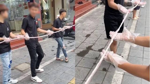 Sau video "khoe" cỗ lòng se điếu dài 40m của nam tiktoker "Thế Lòng Se Điếu", cơ sở "Lòng chát quán" của tiktoker này bị đoàn kiểm tra liên ngành an toàn thực phẩm quận Cầu Giấy (TP Hà Nội) kiểm tra đột xuất.