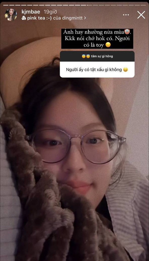Chuẩn bị bước sang năm mới, hot girl Tăng Mỹ Hàn - bạn gái tin đồn của HIEUTHUHAI gây chú ý khi nhắc chuyện tình yêu trên Instagram. Người đẹp GenZ thoải mái chia sẻ về những thắc mắc của cư dân mạng liên quan đến việc hẹn hò của mình. Dù không nhắc thẳng tên đối phương nhưng netizen vẫn rần rần vì biết "nửa kia" mà Tăng Mỹ Hàn nói đến không ai khác là chủ nhân bản hit Ngủ một mình.