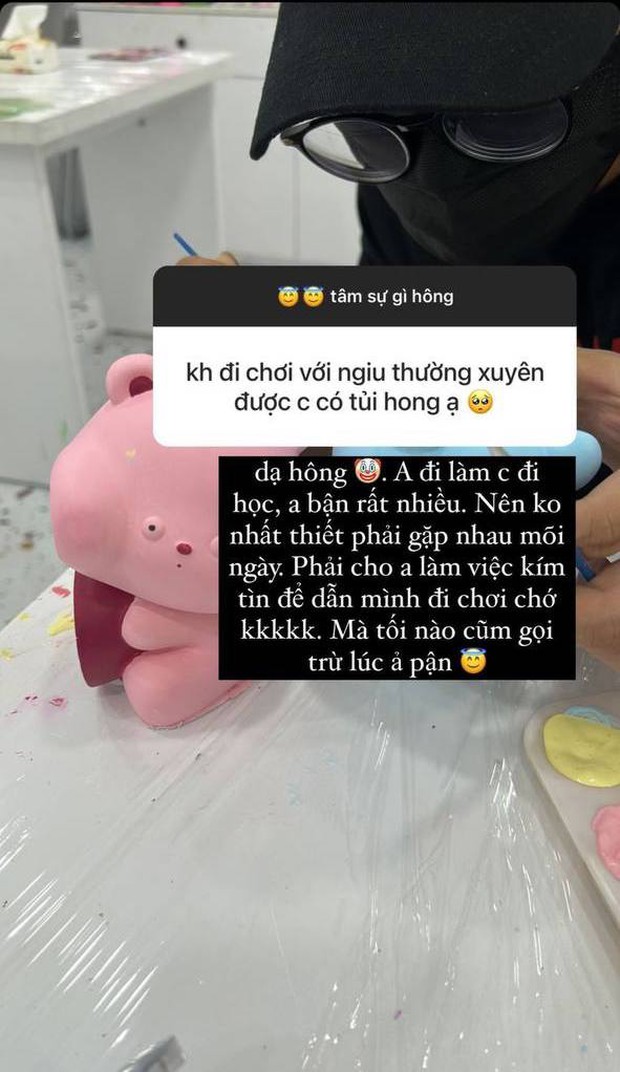 Nói về việc không thể hẹn hò thường xuyên, Tăng Mỹ Hàn chia sẻ cô không hề tủi thân: "Anh đi làm, mình đi học, anh bận rất nhiều, nên không nhất thiết phải gặp nhau mỗi ngày. Phải cho anh làm việc kiếm tiền để dẫn mình đi chơi chứ, mà tối nào cũng gọi trừ lúc anh bận". Qua chia sẻ của Tăng Mỹ Hàn, có thể thấy cô và bạn trai vẫn gọi điện thường xuyên để kết nối với nhau dù lịch trình bận rộn.
