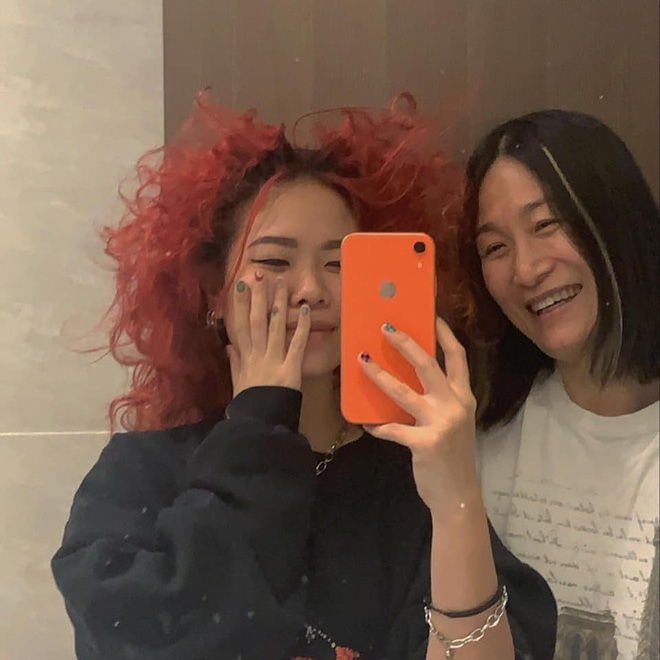 Mới đây Tlinh tiếp tục khiến nhiều người trầm trồ khi khoe ảnh chụp chung với mẹ - cô Hạnh. Vì vậy mà bên cạnh mái tóc đỏ rực, xù bông của Tlinh sau khi đi diễn về, mọi người cũng dồn sự chú ý vào vẻ ngoài cực teen và biểu cảm nhí nhố đến từ "chị" mẹ nhà Tlinh.