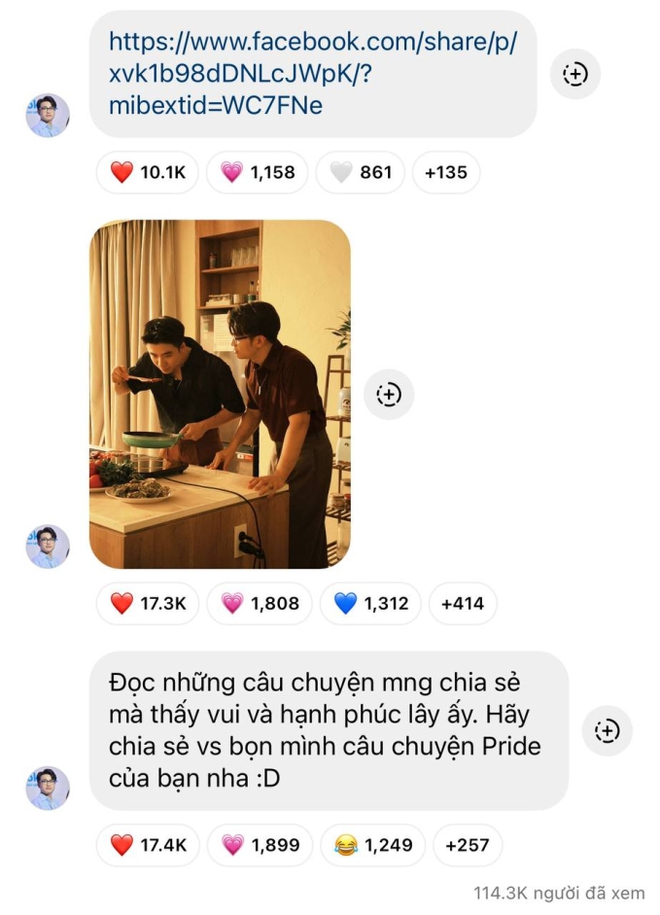 Giờ đây, một KOL đang nổi lên, kiếm tiền nhờ mối tình đẹp và hơn hết đó là mối tình đồng tính (yếu tố gây chú ý chủ chốt) lại đi quy chụp, dán nhãn lên chính những hoạt động của cộng đồng là "không normal", trích trong một bài viết của tài khoản M. đang thu hút sự chú ý của cộng đồng mạng.