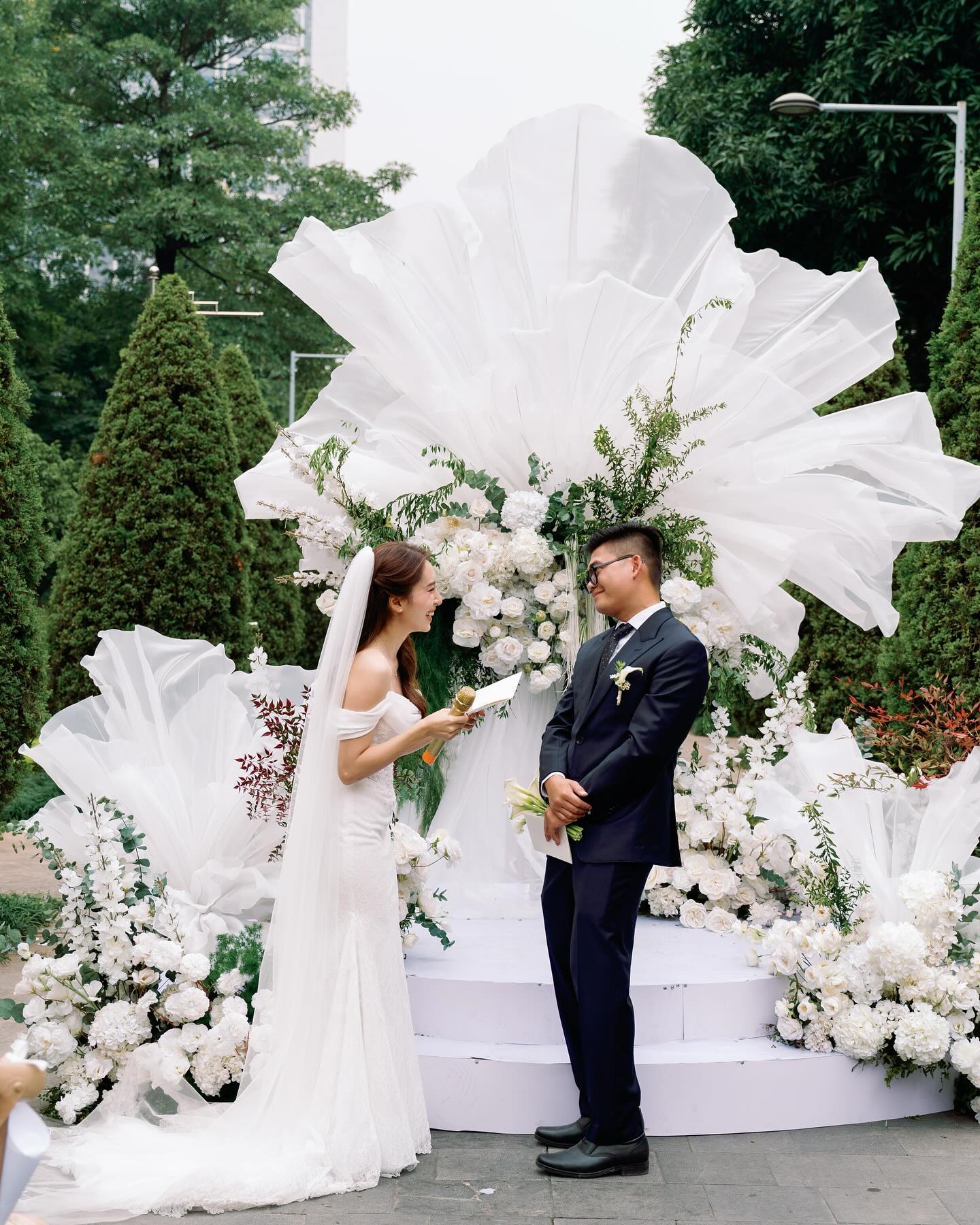 Bản thân Phương Hà cũng rất xúc động khi đọc vow của mình. Cô vừa khóc vừa nói: “Đây là mối quan hệ chưa bao giờ em tưởng tượng nó có thể xảy ra như vậy. Anh đến vào lúc em không ngờ nhất, ít mong chờ nhất nhưng ngày hôm nay anh và em cùng đứng đây, đưa mối quan hệ này lên một tầm cao mới với sự chứng kiến của gia đình, bạn bè. Không biết là anh đã sẵn sàng chưa? Hỏi anh 1000 lần thì anh đều là sẵn sàng rồi, có mỗi em thôi.