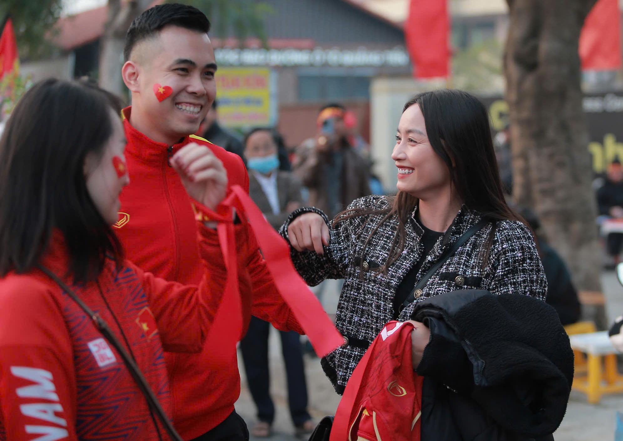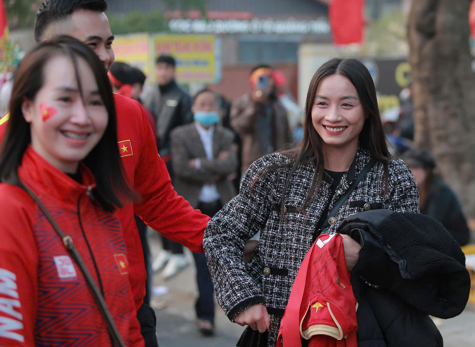 Chiều 29/12, người hâm mộ bắt gặp hot girl ĐT nữ Việt Nam Hoàng Thị Loan xuất hiện trước SVĐ Việt Trì, Phú Thọ để cổ vũ đội tuyển Việt Nam trong trận bán kết lượt về AFF Cup 2024. Hoàng Loan khoe nhan sắc xinh đẹp, nụ cười tươi tắn như hoa trò chuyện cùng mọi người trước giờ xếp hàng vào khán đài xem trận đấu.