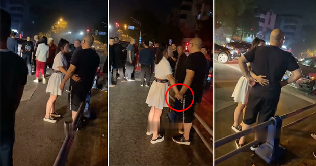 Sự âu yếm sai thời điểm này khiến cho anh chàng nạn nhân cũng cảm thấy nóng mặt, anh liên tục né tránh vào cố gắng kéo tay cô kia ra. Tuy nhiên cô gái này vẫn "mặt dày" tiếp tục đan tay vào anh chàng kia thật chặt, áp sát người vào đối phương để xin... bỏ qua.