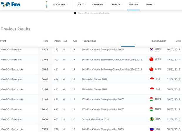 Thành tích nổi bật trong 5 năm gần đây của Tommy Nguyễn được FINA thống kê: