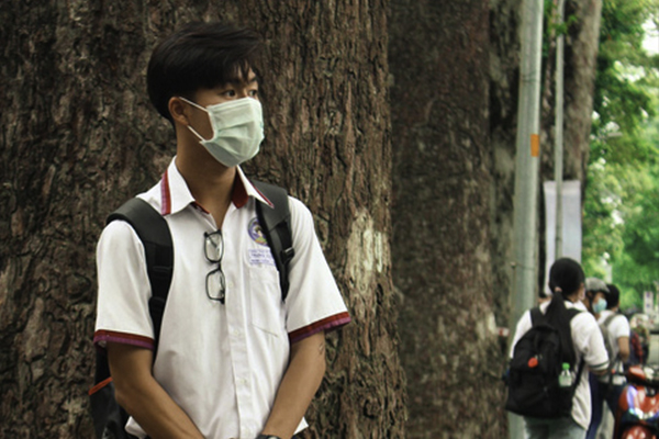 Có một sự khác biệt lớn so với mọi năm chính là năm nay, các sĩ tử đi thi đều mang khẩu trang kín mít. Tuy nhiên, lớp khẩu trang mỏng thì làm sao ngăn cản được thần thái ngời ngời của các nam thanh nữ tú vừa đến tuổi trưởng thành. Ví dụ như sĩ tử Hà Mạnh Cường (học sinh lớp 12A11 trường THPT Trưng Vương) - chàng trai với làn da bánh mật và ngoại hình cao lớn, nhìn "trưởng thành" hơn hẳn bạn cùng trang lứa.