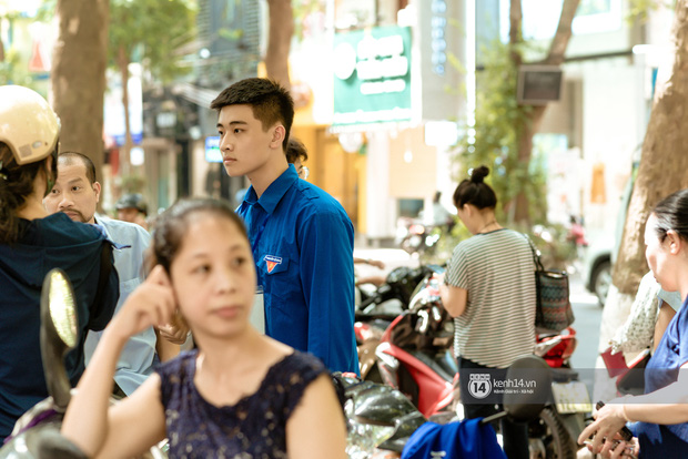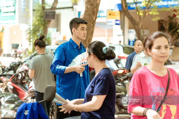 Nhưng trai đẹp mà còn tốt bụng nhất định là cực phẩm! Tại điểm thi trường THPT Phan Đình Phùng, có một anh chàng sinh viên tình nguyện xuất hiện nổi bần bật với chiều cao mét 8. Anh chàng có nụ cười tỏa nắng cùng làn da trắng mịn và gương mặt siêu điển trai thu hút mọi ánh nhìn. Và quan trọng hơn cả, anh chàng luôn tích cực là người cõng nữ sinh bị gãy chân từ điểm đỗ xe đến tận phòng thi bên trong.