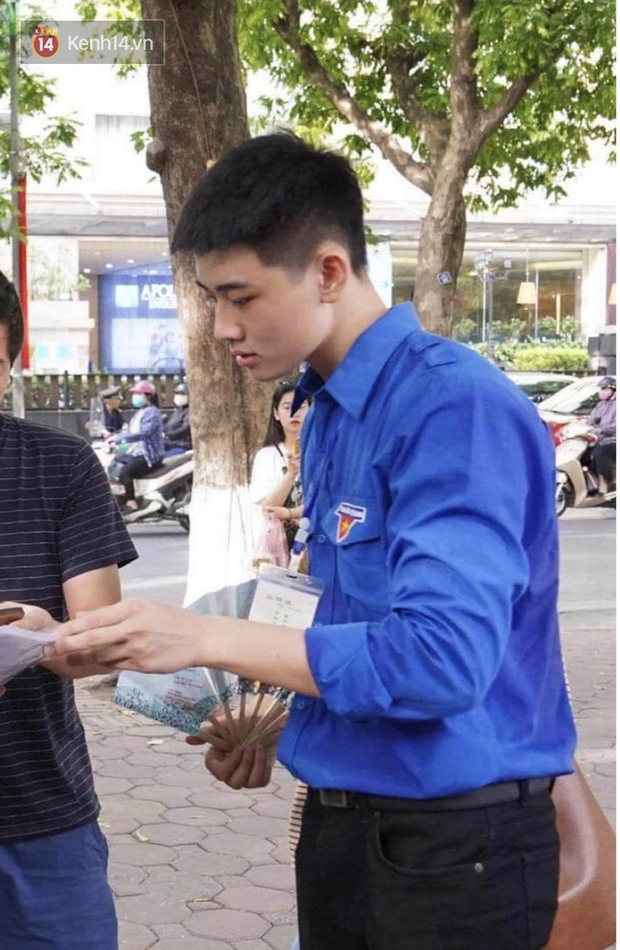 Được biết, chàng sinh viên tình nguyện này là Đỗ Nguyễn Quang, sinh viên năm 2 ngành Kế toán Kiểm toán của ĐH Khoa học Quốc gia Hà Nội. Quang chia sẻ mình cùng đội sinh viên tình nguyện của trường phối hợp với bên đội Quán thánh và đội học trò trường Phan Đình Phùng để hỗ trợ kỳ tuyển sinh năm nay.