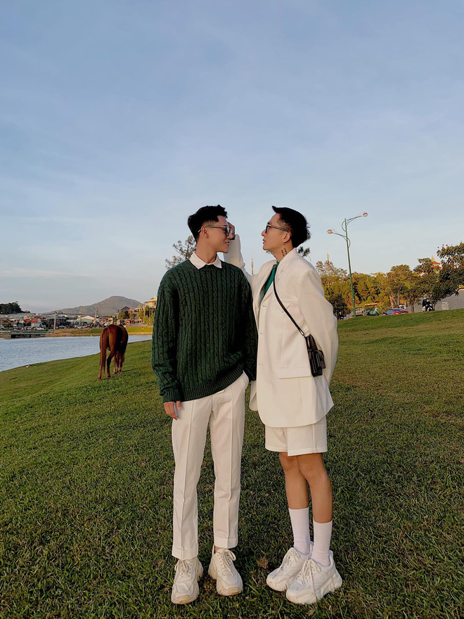 Vẻ ngoài điển trai của Hồng Sơn và Hùng Anh thì khỏi phải bàn nên điều gây ấn tượng hơn cả lại là cặp đôi mặc đồ tone sur tone cực kì ăn ý. Vì vậy mà không lâu sau khi được Hồng Sơn đăng tải trong một nhóm dành cho các couple, bộ ảnh của họ đã nhận về 37k lượt yêu thích, 1,1k lượt share cùng rất nhiều bình luận khen ngợi.