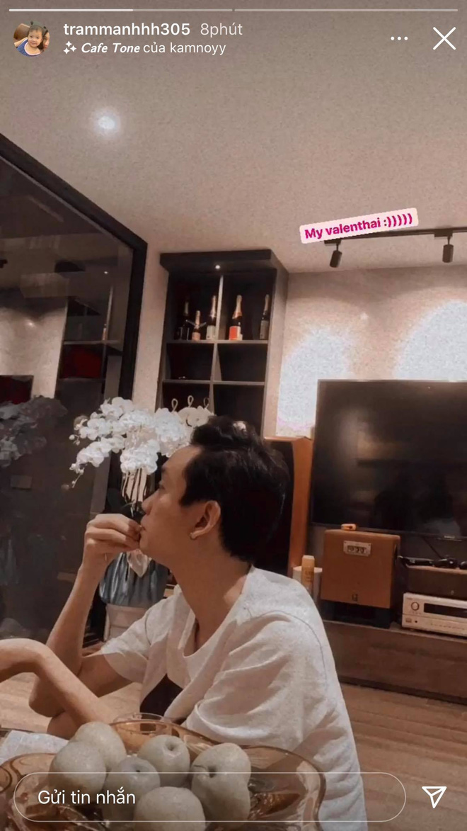 Mới nhất, đúng ngày mùng 3 Tết kiêm Valentine, bà xã JustaTee đã đăng story kể xấu chồng ở nhà "ăn quà như mỏ khoét". Để làm bằng chứng cho màn "dìm hàng" này, Trâm Anh còn quay video cảnh chồng ngồi bệt giữa sàn nhà, mặc áo thun đơn giản nhưng ăn vặt không ngơi tay. Đích thị "cá con" đây rồi!