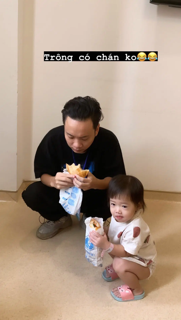 Cách đây không lâu, Trâm Anh cũng khiến dân tình không khỏi phì cười khi dìm hàng cùng lúc cả chồng lẫn con. Theo đó bà xã JustaTee đã đăng bức ảnh chồng và con gái đang ngồi xổm, ăn bánh mì trong bộ dạng khá chật vật.